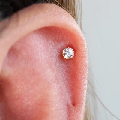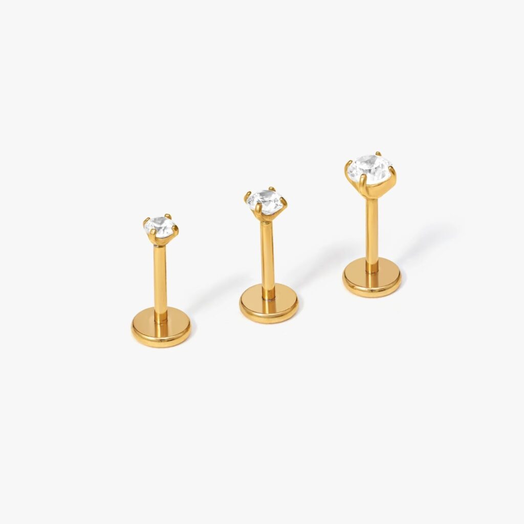 Flat back earrings are a type of stud earring that features a flat, smooth backing instead of the traditional butterfly or screw back. The flat back rests directly against the skin, which means there is no part of the earring sticking out behind the ear. This design makes them much more comfortable, especially for people who wear earrings for long periods or sleep with them in. Flat back earrings are commonly used for both earlobe and cartilage piercings, such as the helix, tragus, and conch.